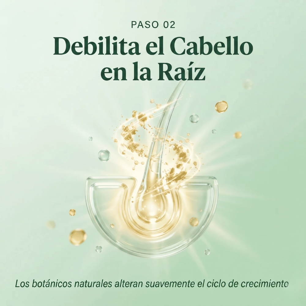 Formulado botánicamente para detener el vello desde la raíz hormonal.